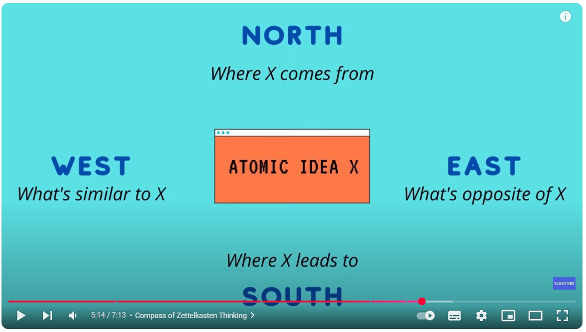 Then one day, I came across that "knowledge-from-to" framework again—this time in a video by YouTuber Vicky Zhao, who introduced her friend's "Idea Compass" as a way to navigate thinking.